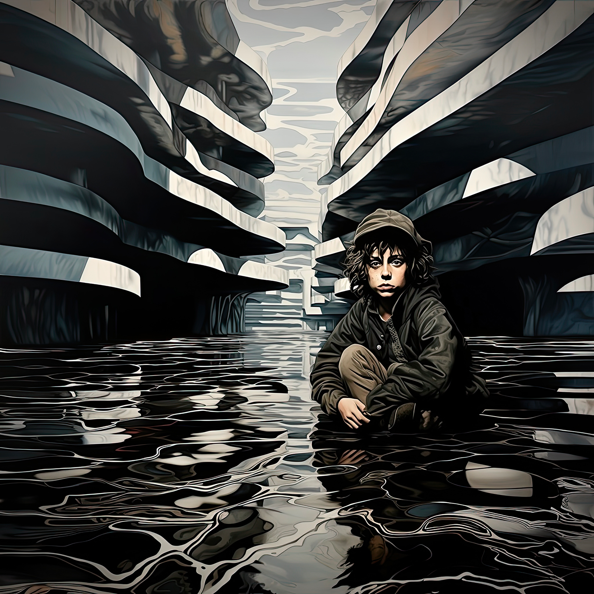"No Refuge" contemplates the plight of refugees in war-torn regions such as the Ukraine and many developing nations, where their arrival in the West does not guarantee security or a roof over their heads. The edifices of the West, while soft, smooth, and welcoming in shape at first glance, are tarnished and cold upon deeper inspection.